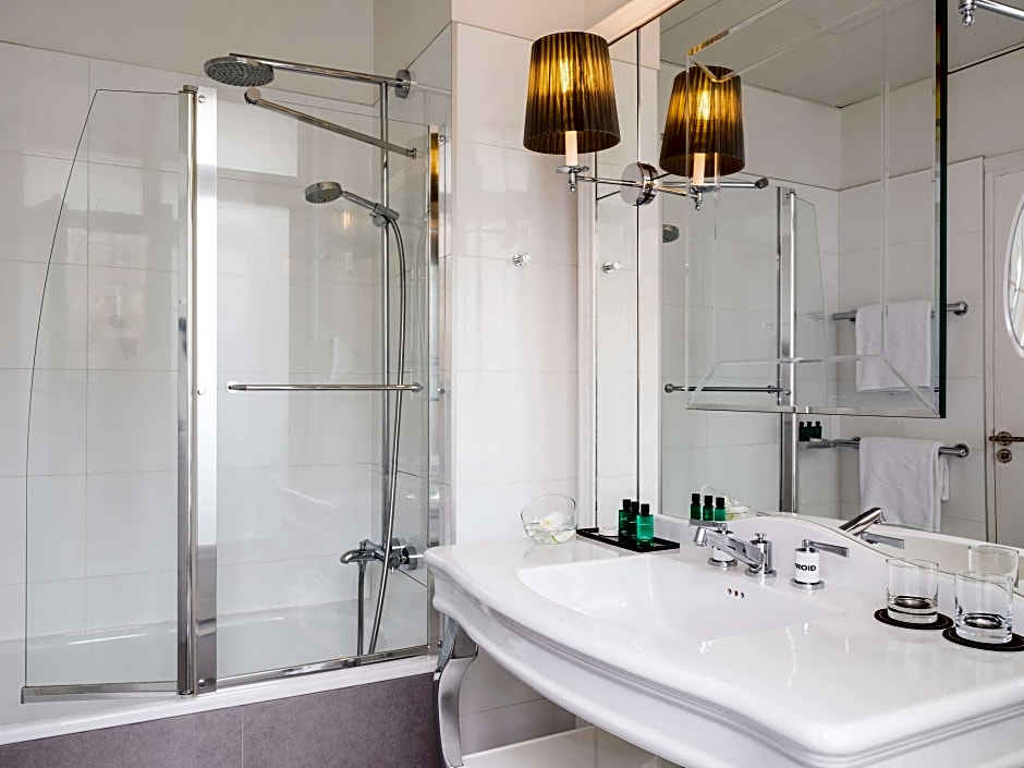 During your stay, you can indulge in the elegance of the hotel's soundproof and air-conditioned rooms, ensuring a peaceful night's sleep. The hotel also offers services such as babysitting, laundry, and ironing, as well as facilities for disabled guests. Guests can enjoy a variety of onsite amenities including a bar, room service, and a business center.